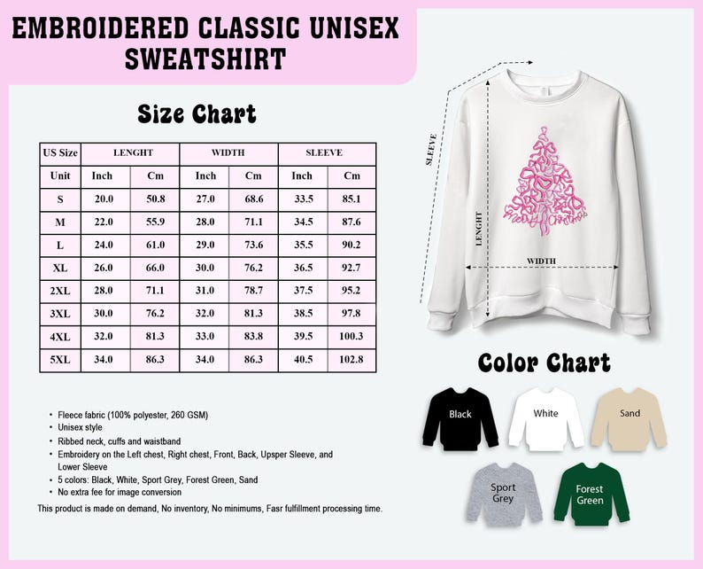 | Size | Chest (in) | Length (in) | Sleeve (in) |