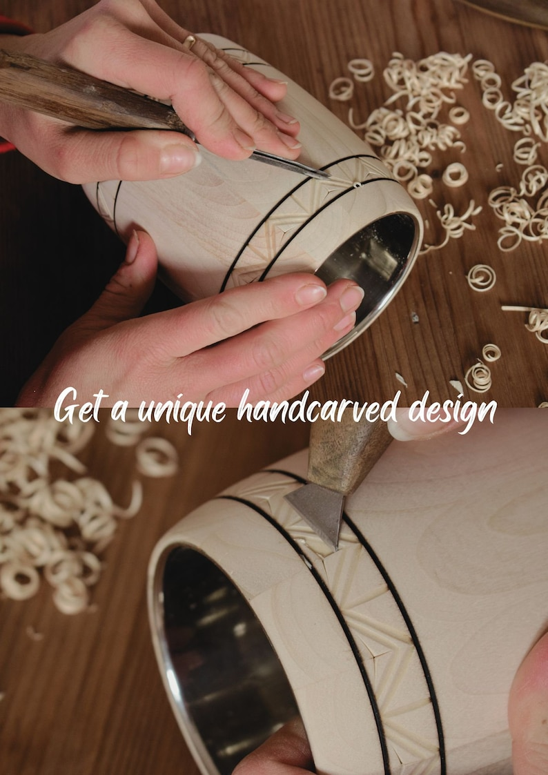 Raise a toast in style with our handcrafted wooden beer mug — the perfect blend of tradition, craftsmanship, and functionality. Each mug is manually processed from natural linden wood and decorated with ornate carved details, then finished with a stainless-steel insert to ensure durability and practicality. A truly unique piece that is as beautiful as it is functional.