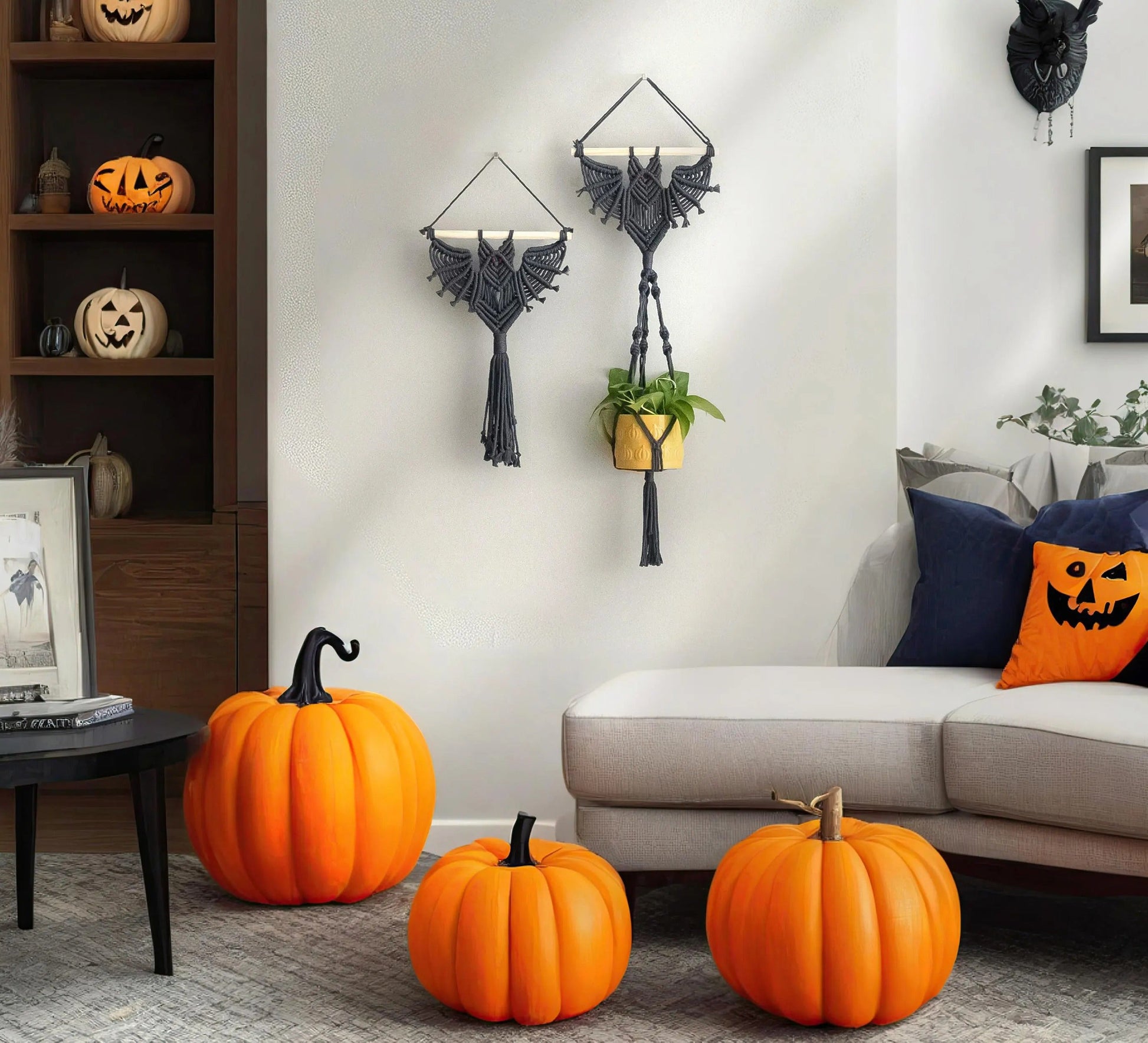 Gothic Bat Decor, Hanging Macrame, Witchy Room Decor, Modern Halloween, Dark Wall Art, Hanging Plant Holder, Bat Decorations W52