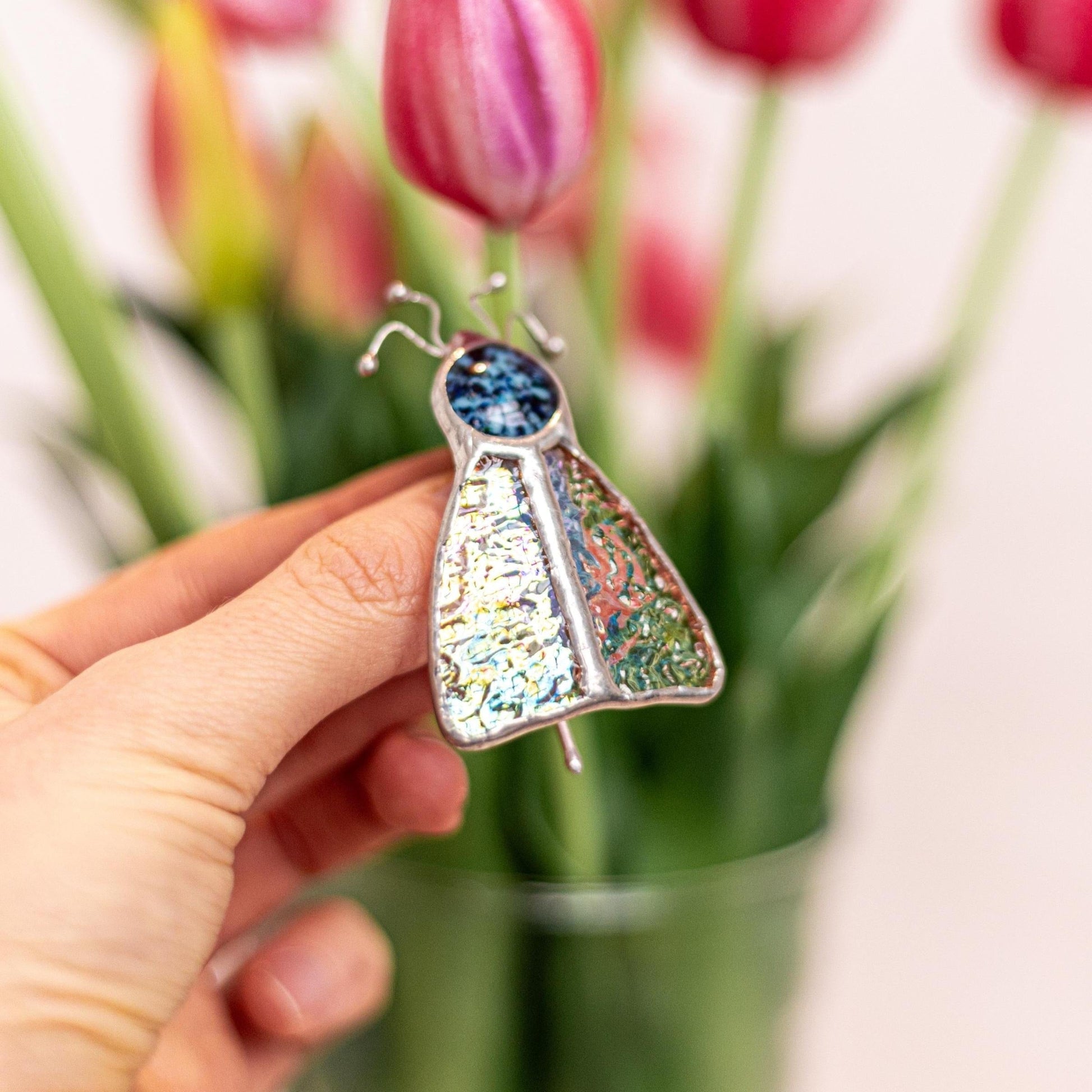Grasshopper Stained Glass Planter, Unique Housewarming Anniversary Gift for Mom from Daughter, Garden Stake Home Decoration, Bug Planter