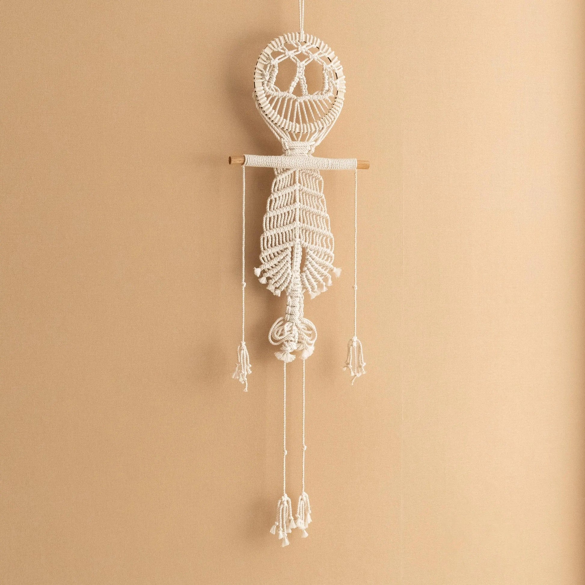 Macrame Skeleton, Halloween Hanging Decoration, Spooky Wall Art, Gothic Decor Bedroom, Halloween Gift, Goth Tapestry, White Skeleton W94
