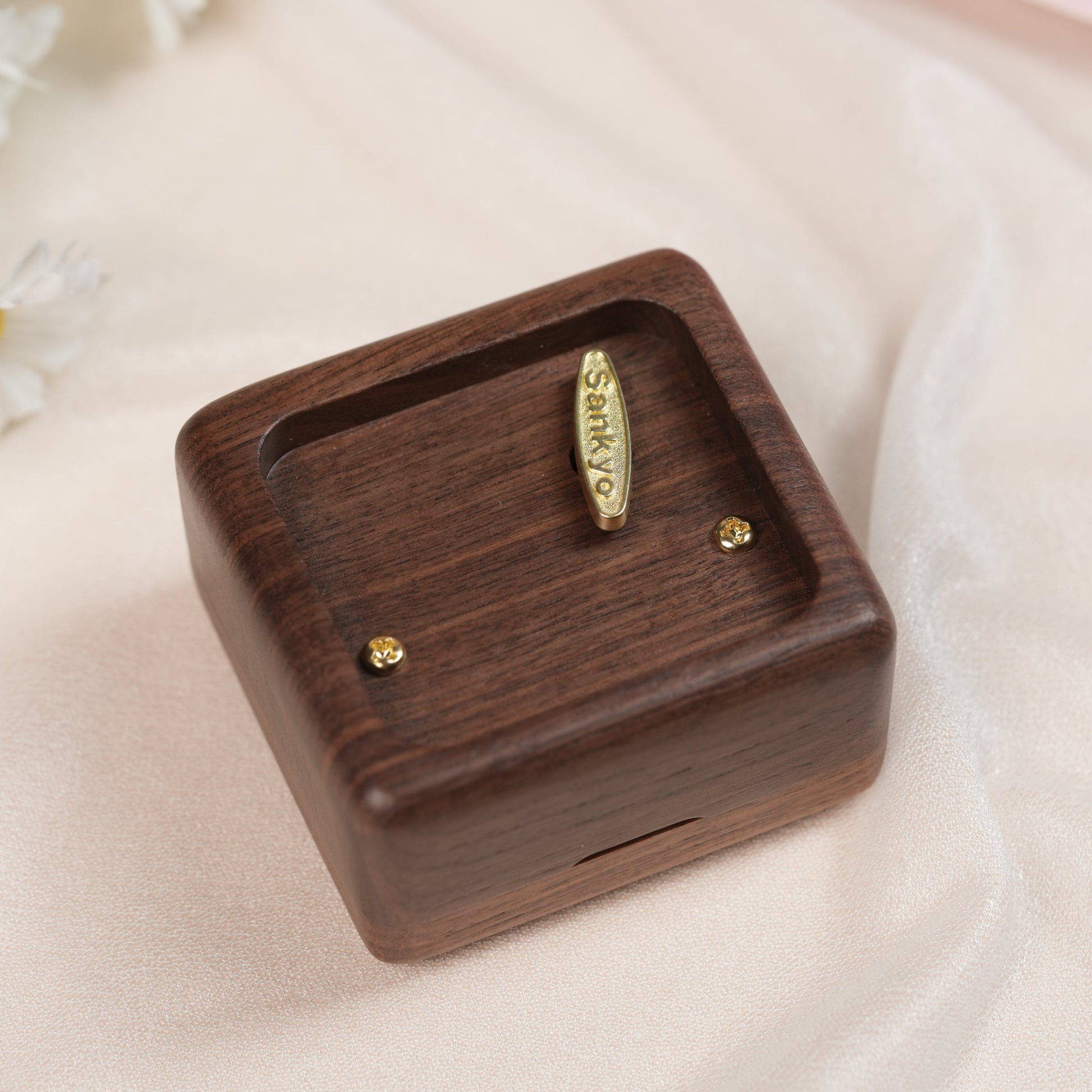 Personalized Music Box with a Custom Metal Melody Mechanism, Wooden Square Music Box