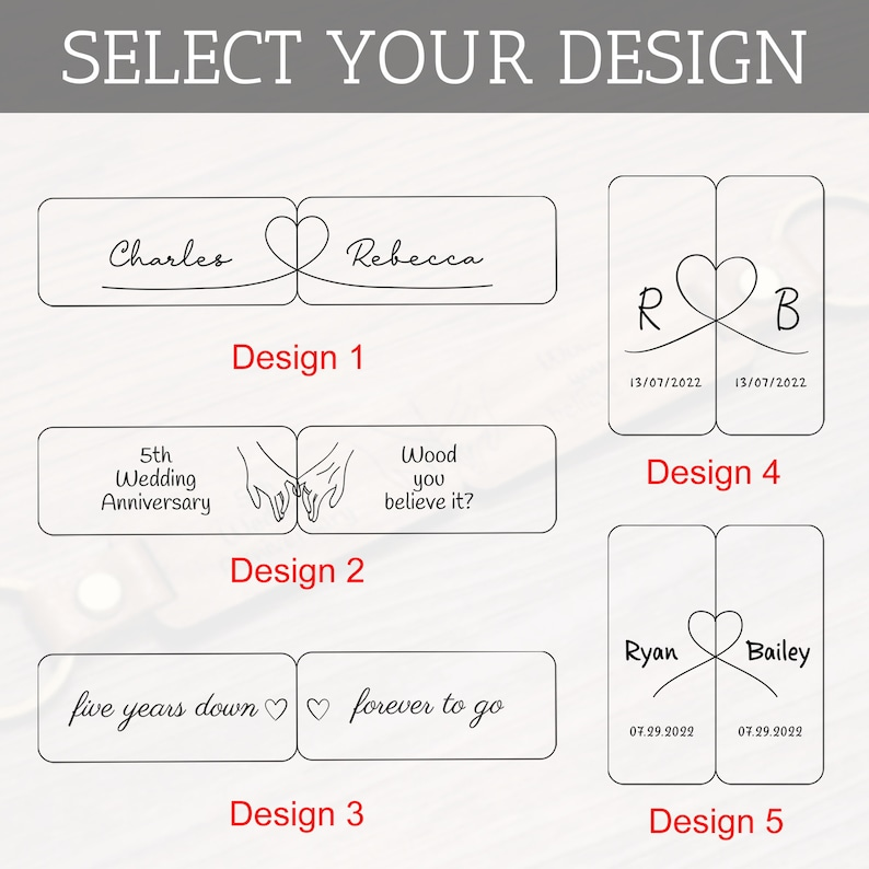 Personalised Wood Couple Keychain, Engraved Keyrings for Couple, Gift For Boyfriend / Husband, 5TH Anniversary Gift, Housewarming Party Gift