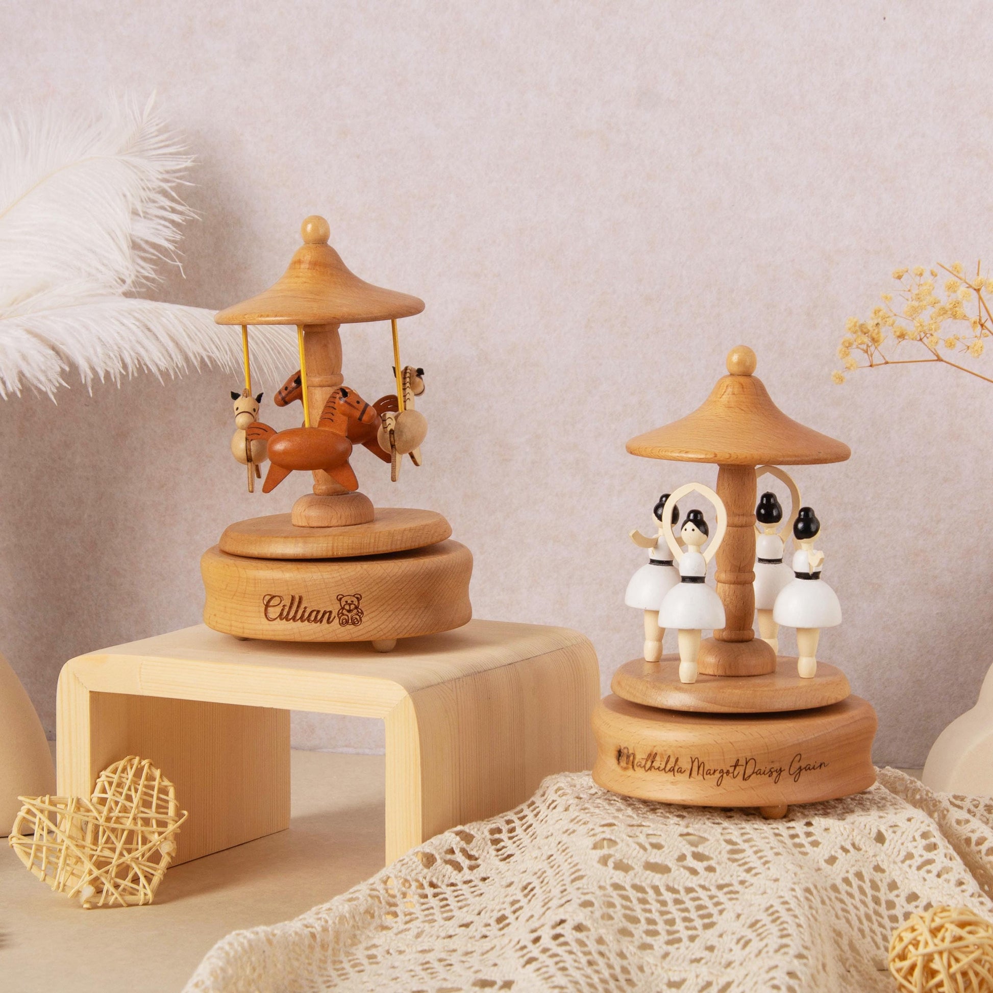 This beautifully crafted wooden carousel music box is more than just a decoration — it’s a gentle companion to help babies drift off to sleep with soft melodies, while also serving as a treasured keepsake for years to come. Perfect as a holiday, birthday, or anniversary gift, it’s a timeless piece loved by both children and adults.