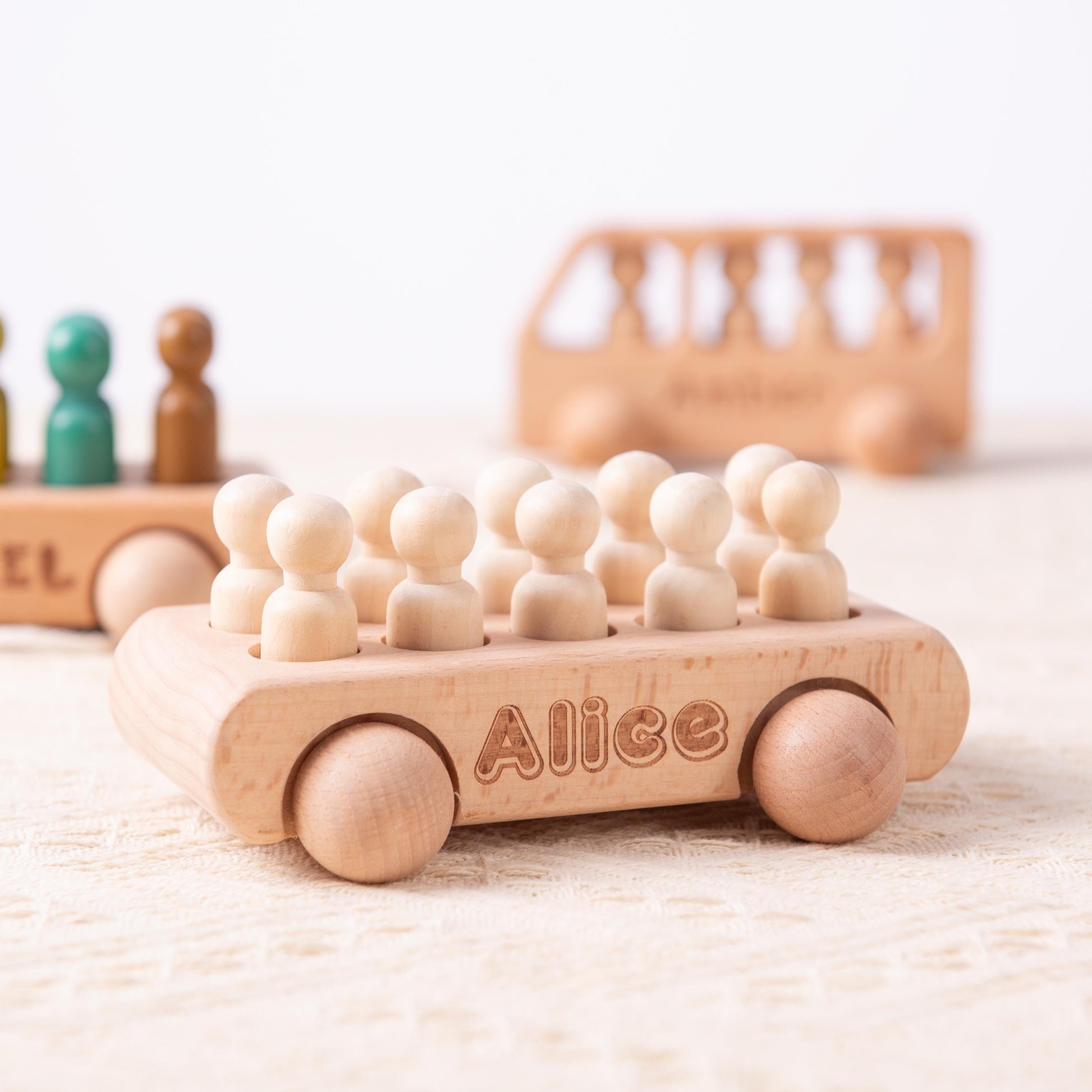 Personalized Birthday Gift for Kids, Custom Wooden Toys for Baby Boys, Wooden Bus with Peg Dolls, Baby Shower Gift, Christmas Gifts for Kids