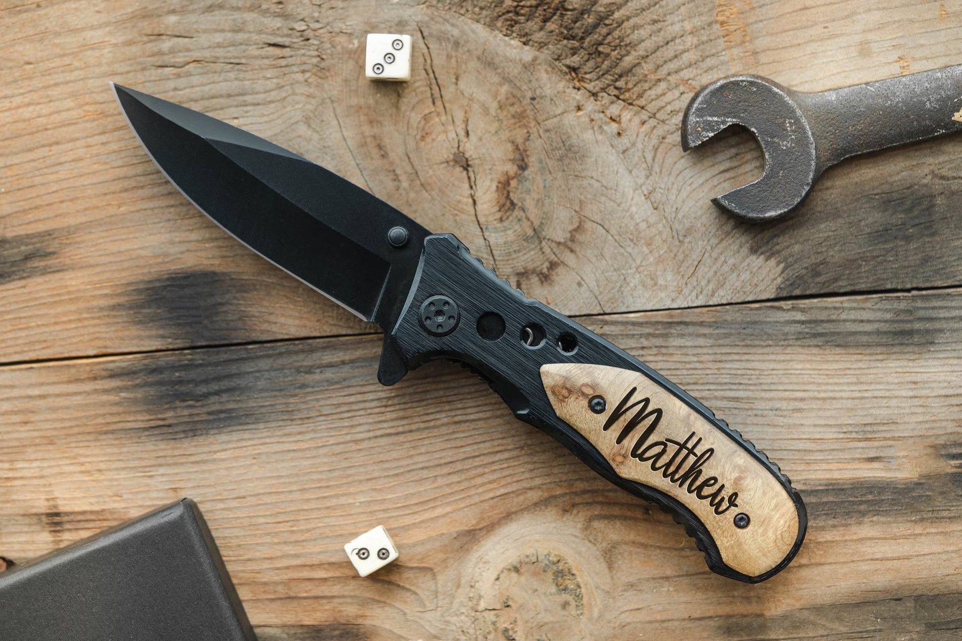 Materials: Wood, Steel, Leather, Laser Engraving