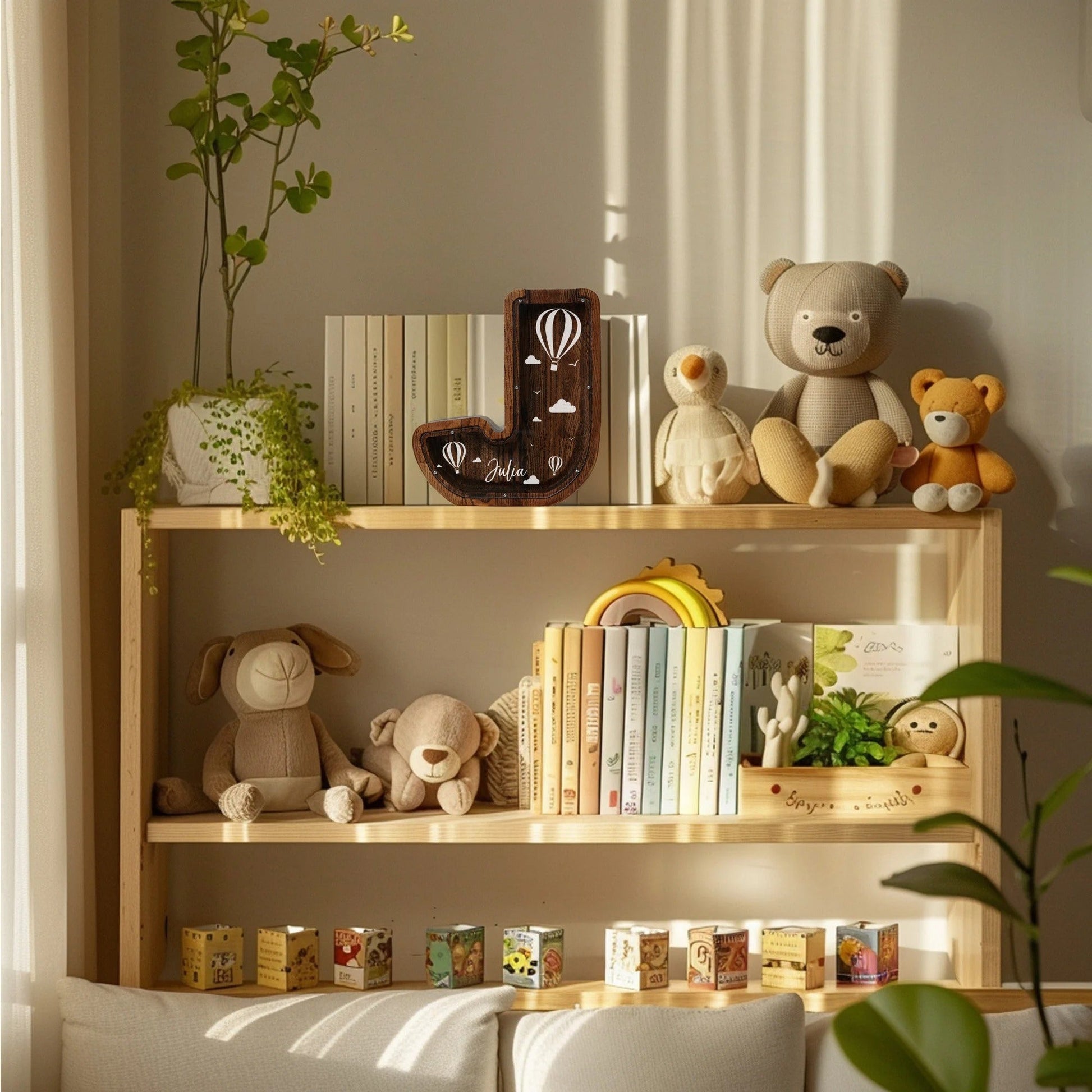 Personalized Letter Piggy Bank For Kids, Custom Money Box for Birthday Gift, Name Engraved Coin Jar, Cute Wooden Savings Holder For Toddler