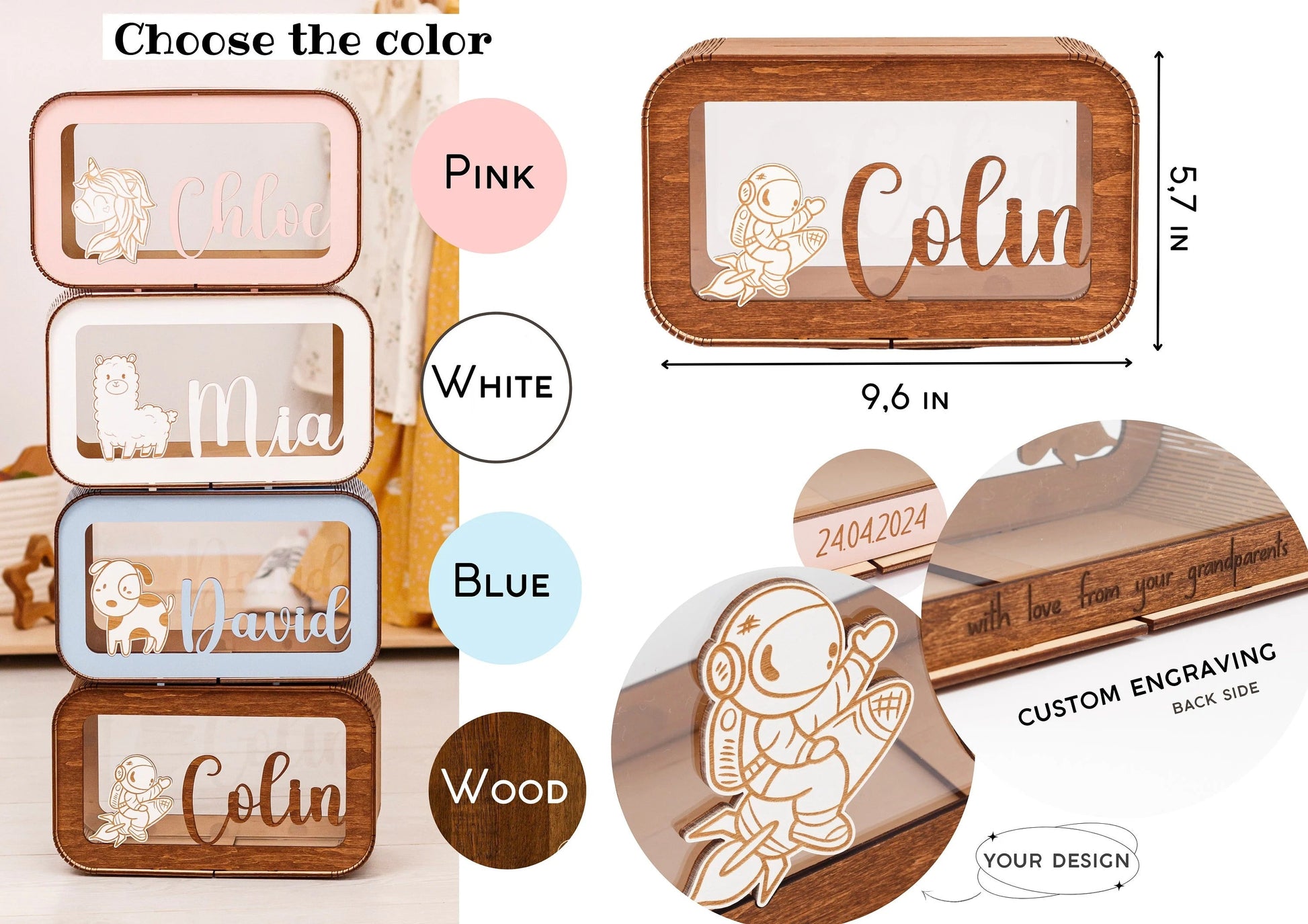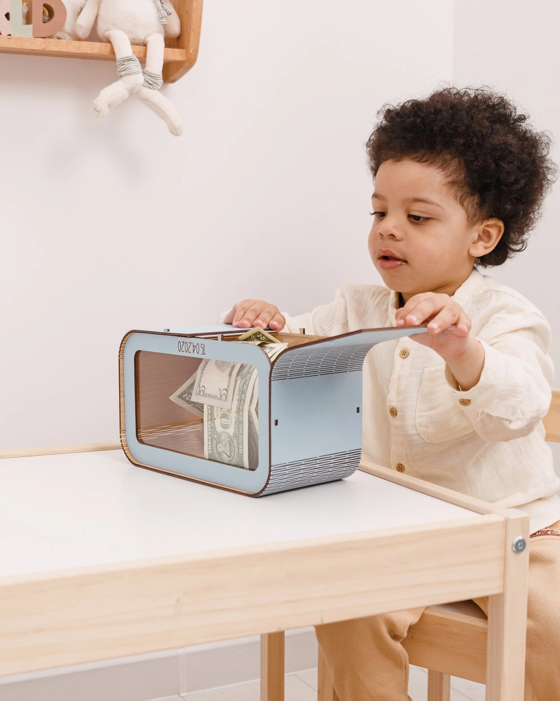 Personalized Piggy Bank, Wooden Kids Money Box with Name, Baby Nephew Gift. Birthday Gifts for Kids, Boy Nursery Decor, Toddler Gifts