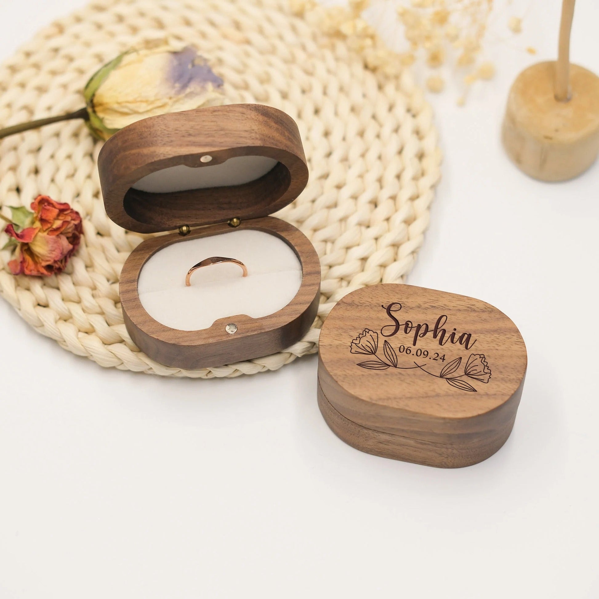 Personalized Wooden Engagement Ring Box, Wedding Anniversary Gift, Personalized Ring Box For Wedding Ceremony, Ring Bearer, Mr & Mrs Gifts