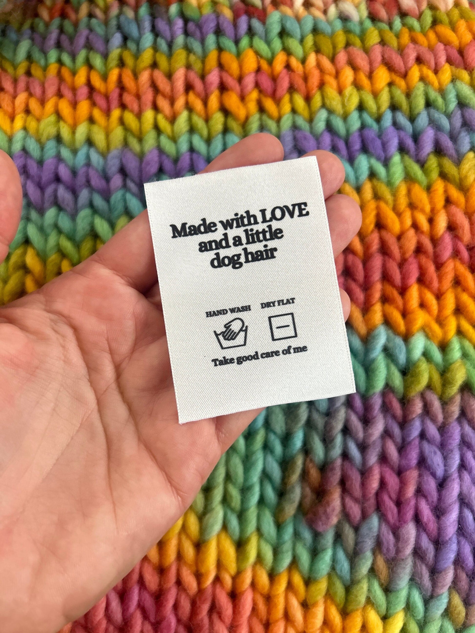 Woven Craft Handmade Clothing Care Instructions Labels ‘Made with Love and a Little Dog Hair’